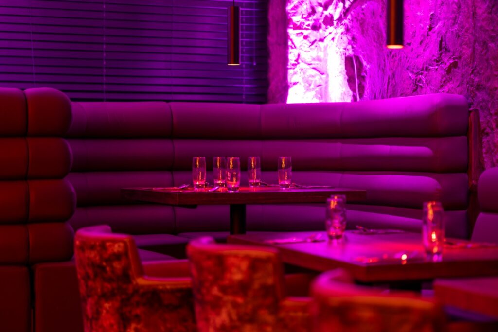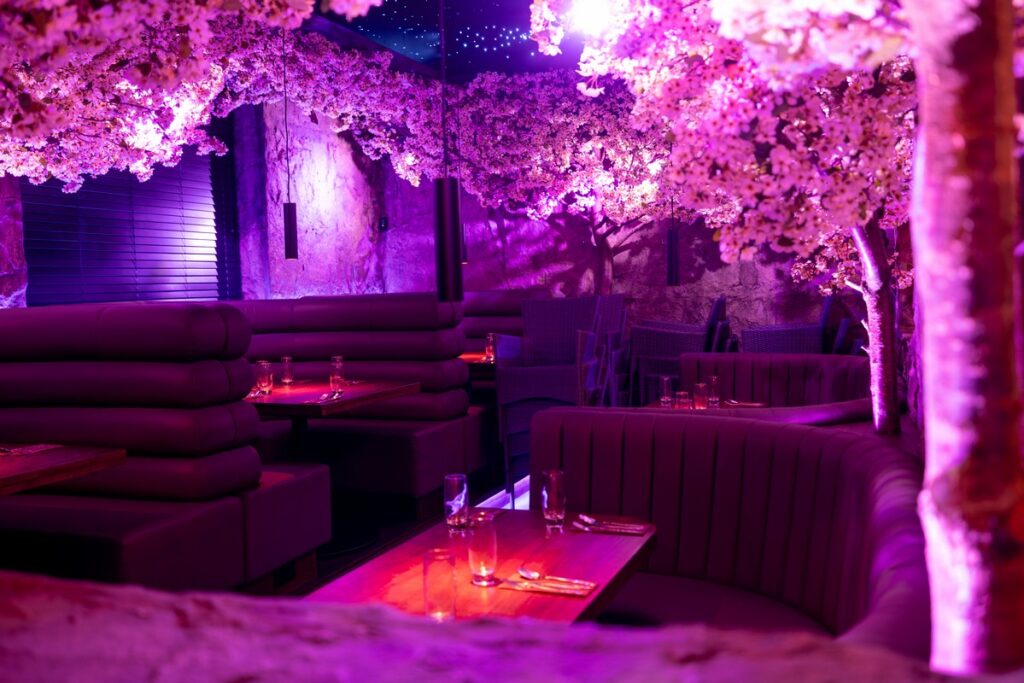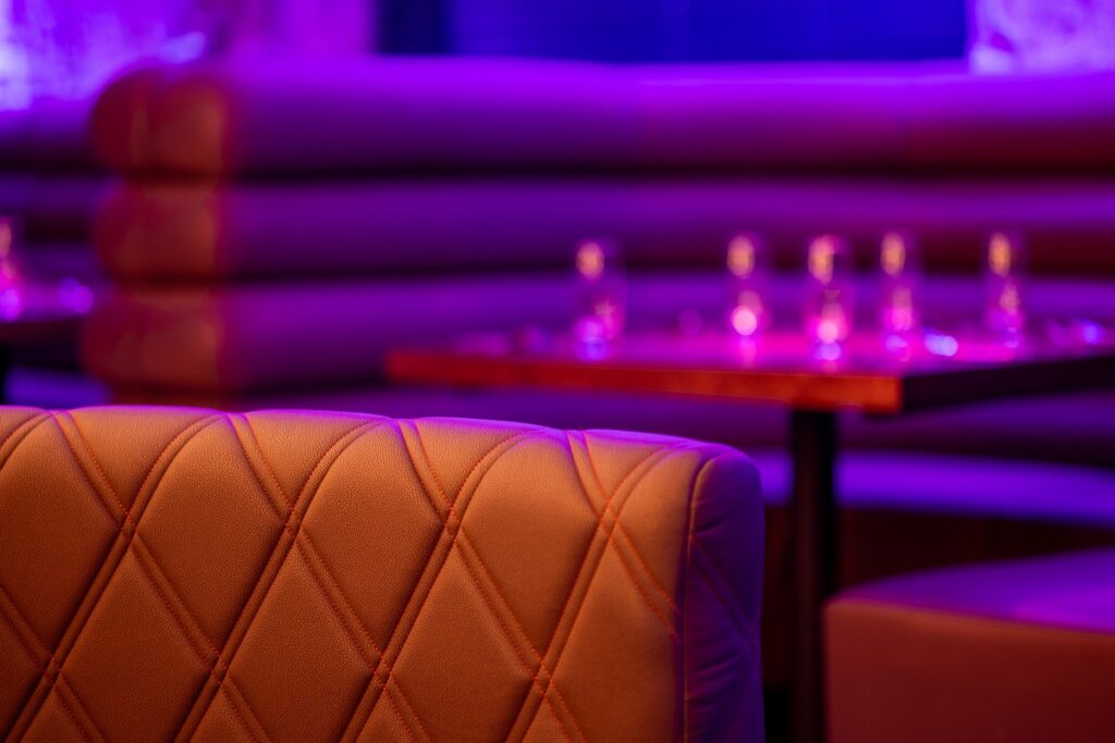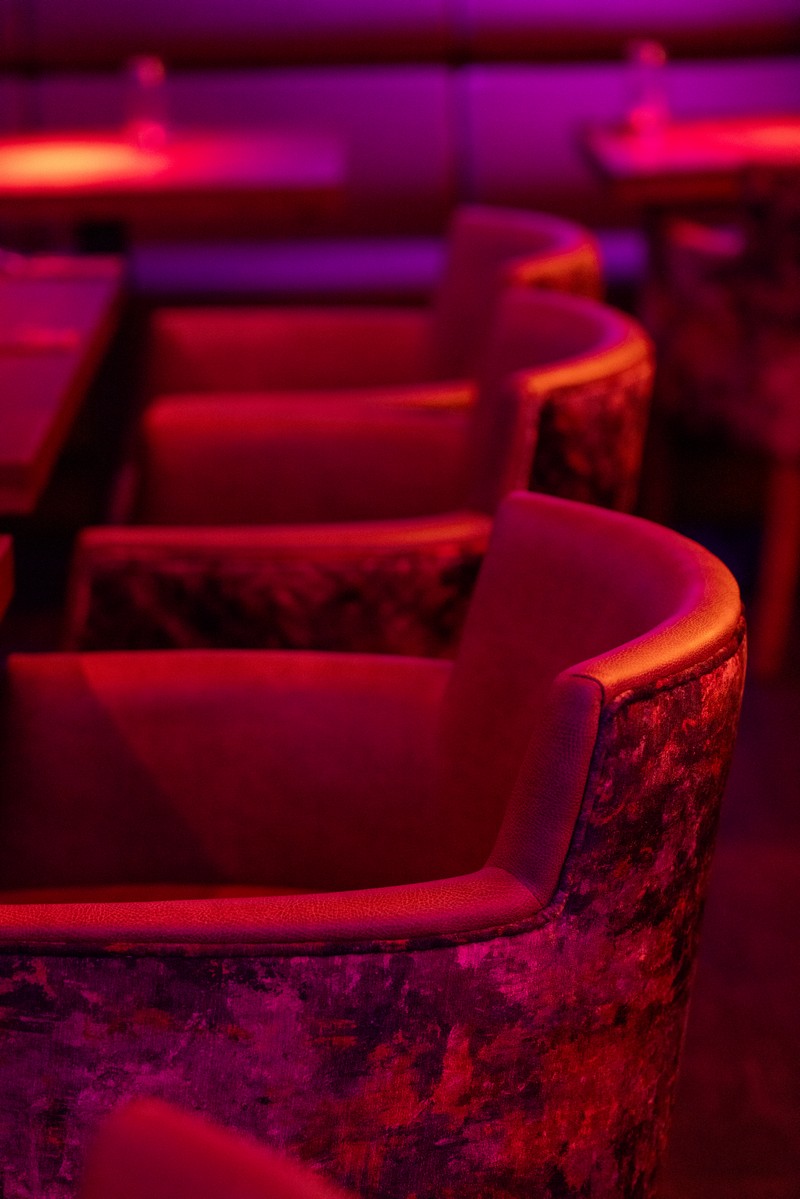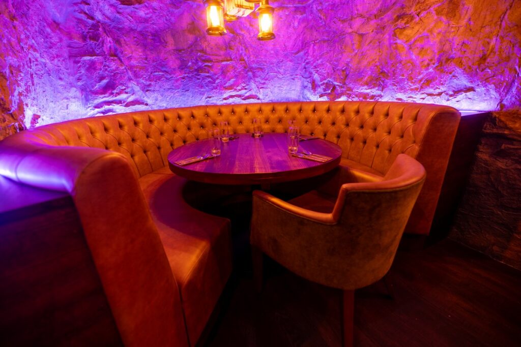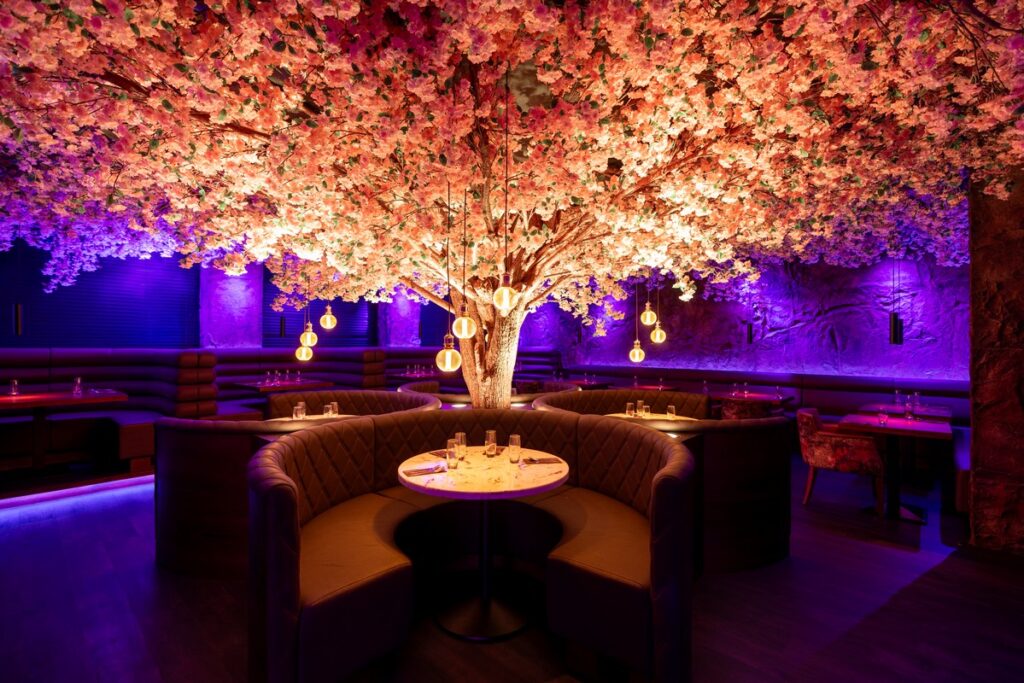For this exciting new venue, we designed and installed a standout tiered radius seating arrangement, featuring elegantly rolled backs with four tiers to create both visual drama and comfortable functionality. The central focal point, a beautiful tree feature, is framed by a bespoke curved booth with a diamond-stitched quilted backrest, adding depth, texture, and luxury to the dining environment. We also installed additional custom seating around the tree itself, carefully shaped to fit the space and enhance the flow of the layout.